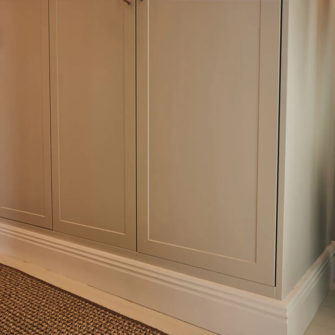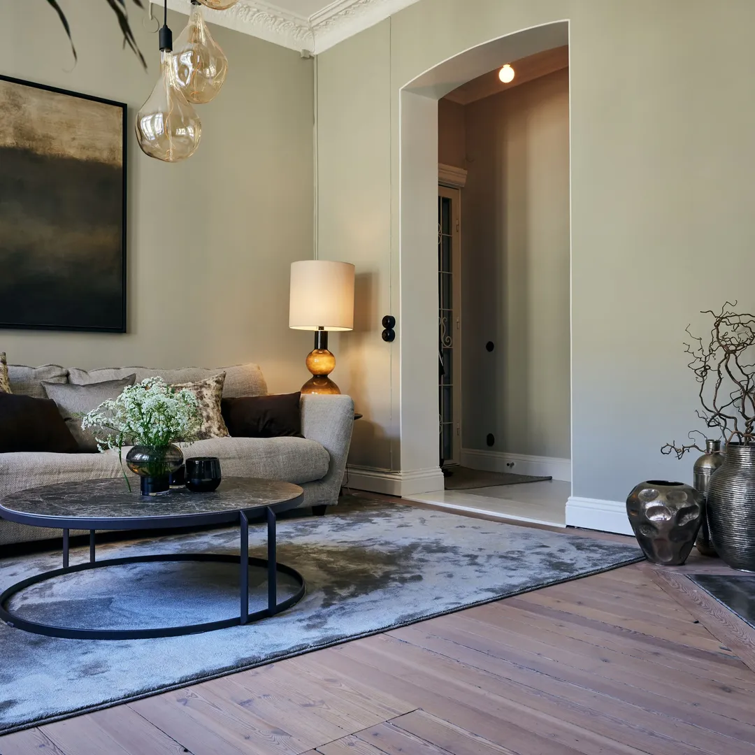 Vi började med färgsättningen, där kulörer valdes för att samspela med bostadens ljusinsläpp, takhöjd och arkitektoniska uttryck. Målet var att förstärka det befintliga – inte konkurrera med det.