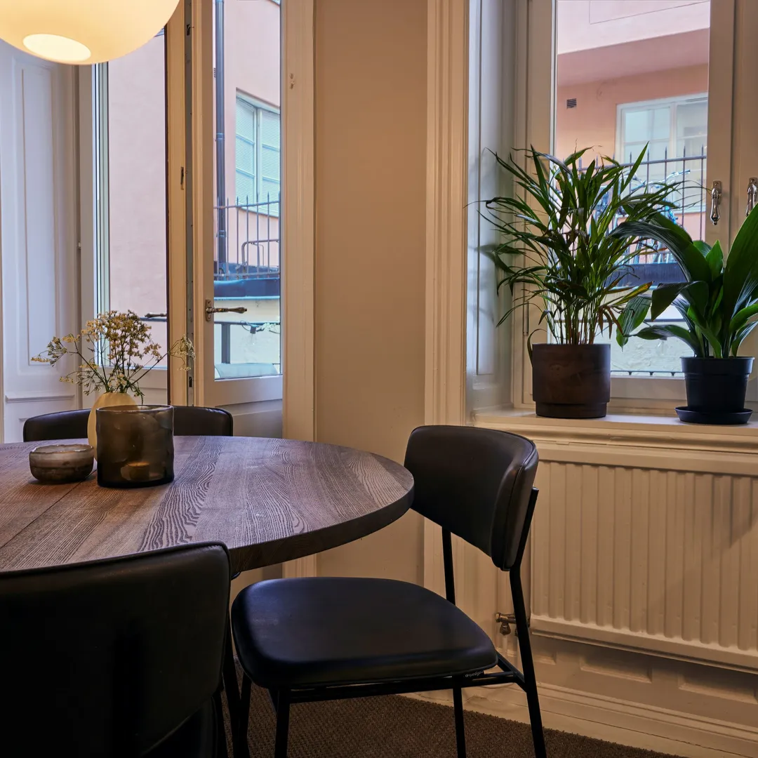 Resultatet blev en sekelskifteslägenhet där historien finns kvar – men där helheten nu är tydligare, lugnare och bättre anpassad för vardagen.